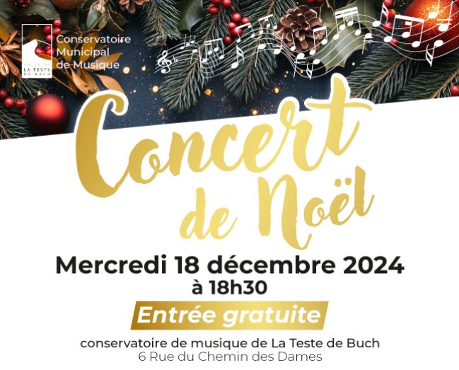 Rendez-vous au Concert de Noël du Conservatoire Municipal le mercredi 17 décembre ! Entrée gratuite Renseignements : 05 56 54 38 00
