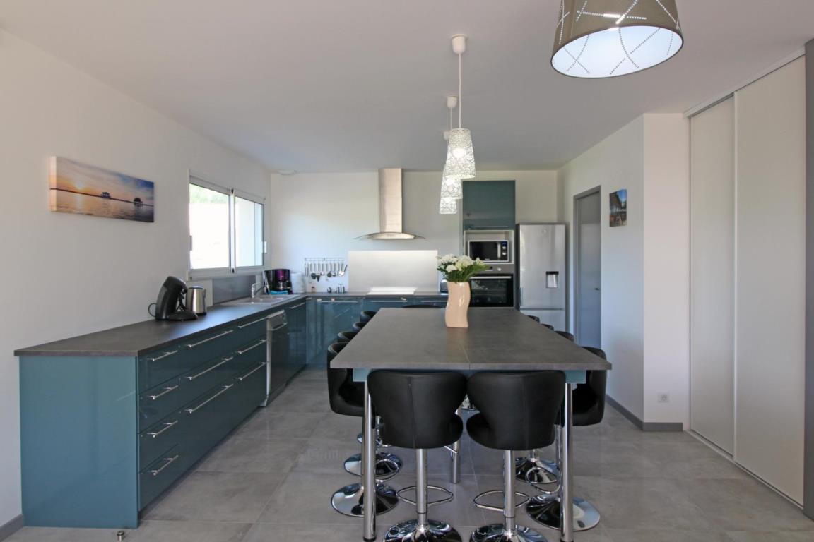 A 1,5 kilomètres du Lac de Cazaux, séjournez dans notre maison neuve climatisée de 140 m2, de plain pied, avec piscine semi-enterrée type octogonale allongée 6mx4m profondeur 1.31m, chauffée, à disposition d'avril à octobre selon conditions météorologiques. La maison est située dans un lotissement calme, proche de la piste cyclable rejoignant le lac et l'océan et dispose d'un jardin de 1290 m² entièrement clos et sécurisé avec grande terrasse bois de 170 m² et boulodrome. Vaste séjour très lumineux ouvrant sur la terrasse avec store banne, cuisine équipée, espace repas et salon, quatre chambres dont trois sont équipées d'un lit 160x200 cm, et une équipée de deux lits 90x190 cm (télévision dans chaque chambre). Les chambres équipées de lits doubles disposent de leur salle d'eau privative avec douche à l'italienne. Une salle de bain indépendante avec baignoire et deux wcs indépendants.