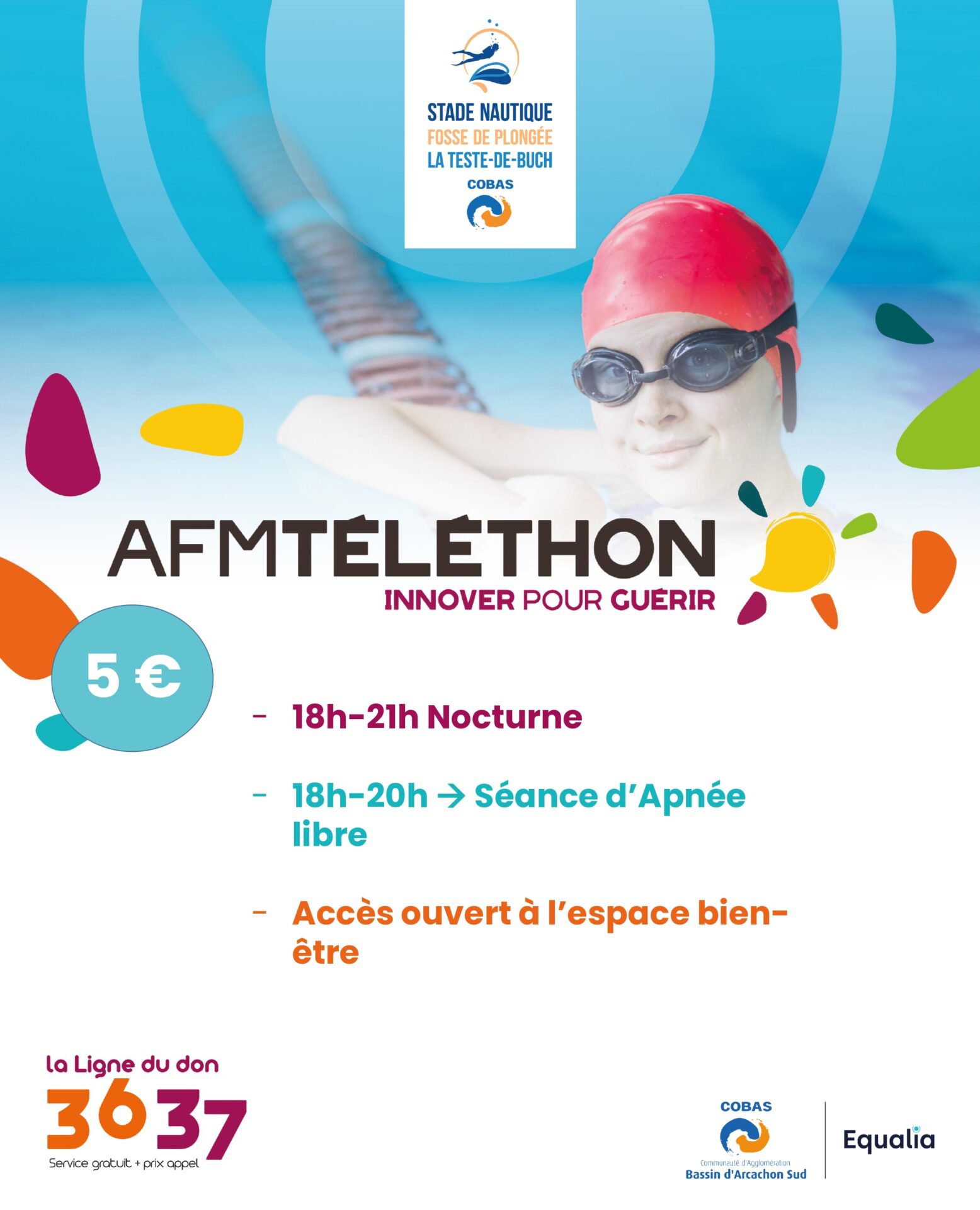 Nocturne au profit du Téléthon – Vendredi 5 décembre, de 18h à 21h30 Au programme : Apnée libre encadrée avec challenges et défis (18h–20h), Espace bien-être ouvert à tous, accès…